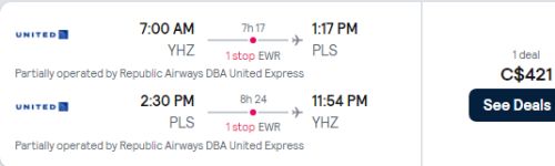 3. Search for a flight from Halifax (YHZ) to Providenciales, Turks and Caicos (PLS)