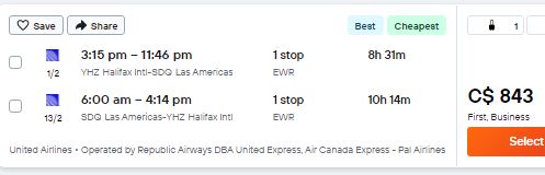 3. Search for a flight from Halifax (YHZ) to Santo Domingo, Dominican Republic (SDQ)