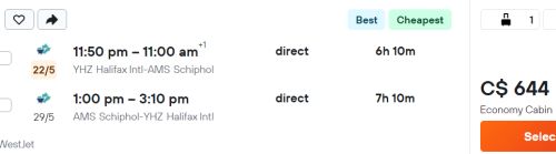 WestJet has dropped the price of their flights from Halifax to Amsterdam, Netherlands down to $644 CAD roundtrip including taxes.